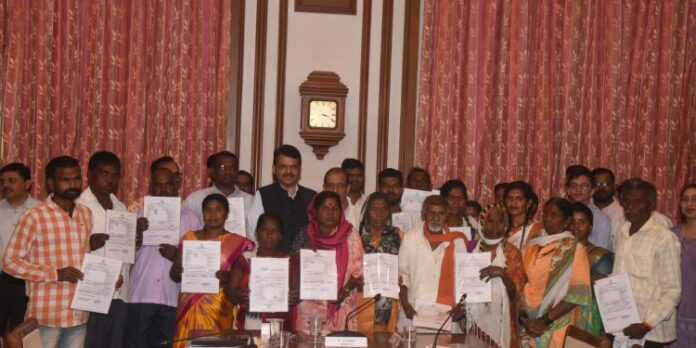 मुंबई – सातत्याने झालेले शोषण, त्यातून अनुभवलेली पीडा, कातकरी बांधवांनी केलेले अनुभवकथन ऐकून जणू सह्याद्री अतिथीगृह सुद्धा आज पाणावले होते. त्याचवेळी एका ऐतिहासिक आणि संवेदनशील क्षणाचे साक्षीदार सुद्धा सह्याद्रीला व्हायचे होते. सावकारांच्या जाचातून सोडविलेली जमिनीची मालकी १७ कातकरी कुटुंबांना परत मिळाली. अर्थातच उपमुख्यमंत्री देवेंद्र फडणवीस यांचा यासाठी पुढाकार अतिशय महत्त्वपूर्ण ठरला. या कुटुंबांना जागांचे सातबारे देण्यात आले.